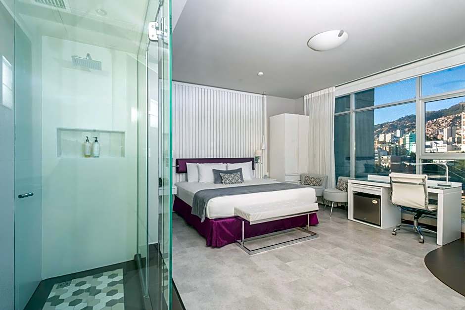 This double room features a king-size bed, a workdesk, a private bathroom with rain shower and a hairdryer, an iPod dock, heating and air conditioning. It features stunning views of the city of La Paz and its surroundings.