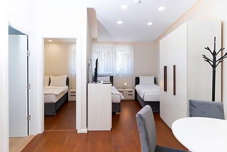 A diverse slate of accommodations is listed, ranging from Deluxe Studio and Studio options with balconies to multiple-suite configurations, including the Presidential Suite. For groups or families, options like the Studio, 2 Twin, Balcony Suite can sleep up to five adults, while other layouts cater to different needs. With these varied layouts in a central Sarajevo setting, this property serves as a lively base to explore the city.