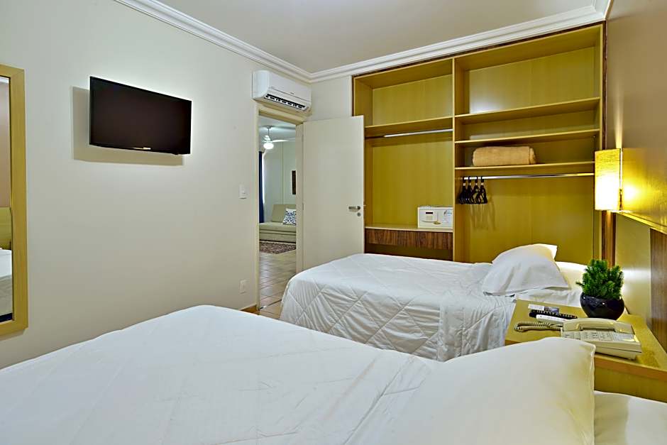 Plaza Inn Flat Araxá offers a variety of rooms including triple rooms that can accommodate 3 adults and 1 child, twin rooms that can accommodate 2 adults and 1 child, and double rooms that can accommodate 2 adults and 1 child. All rooms have a size of 538 sqft and smoking is not allowed. The beds provided in the rooms include twin beds, sofa beds, and double beds.