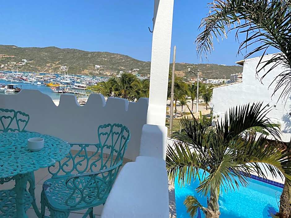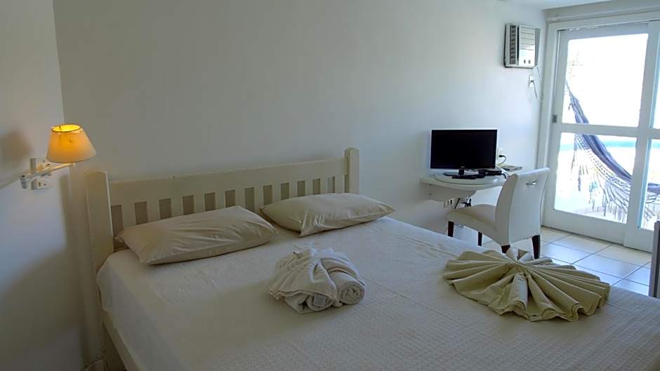 On the beachfront, the sand sits practically at the doorstep. Wake to sea air and coastal views, then stroll to the shore or take a dip in the outdoor pool, which features an inviting shallow end and is open to guests. The setting invites slow mornings, sunny afternoons, and easy days of beach-hopping along Arraial do Cabo’s coastline.