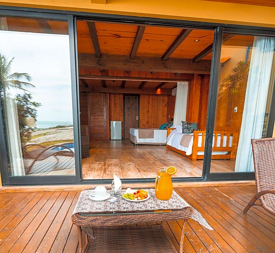 Evenings glow with a touch of entertainment, as live music and performances add charm to the waterfront atmosphere. A varied lineup of accommodations is ready to suit different needs, from suites with sea or garden views to apartments with terraces, offering plenty of space to unwind after a day by the waves. The on-site Brazilian restaurant and a welcoming bar round out the dining and nightlife options, perfect for a relaxed, beachside vibe.
