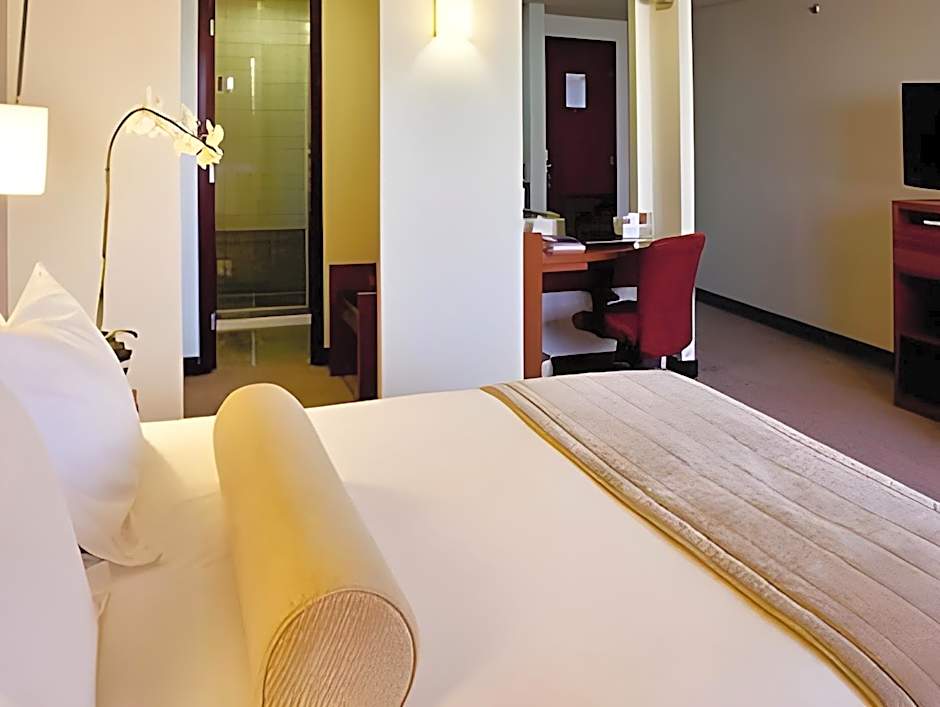 1 Queen Bed, Suite, Nonsmoking includes a queen-size bed 150-154 width plus living room, balcony, cable tv, hairdryer, safe, bathrobes, and slippers and is Wheelchair-accessible.