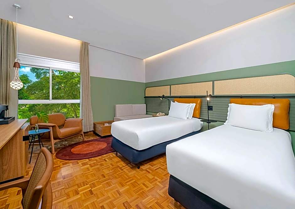 At the Almenat Embu das Artes Sao Paulo, Tapestry Collection hotel, guests can choose between a Superior Twin Room for single occupancy with two Twin beds and a Superior King Room for single occupancy with a King-size bed. Both rooms are triple occupancy, accommodating 3 adults and 2 children, with a room size of 344 sqft each. Smoking is not allowed in either room.