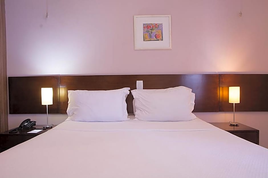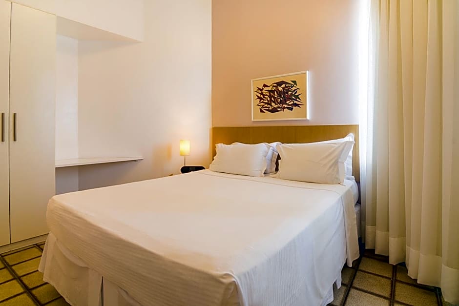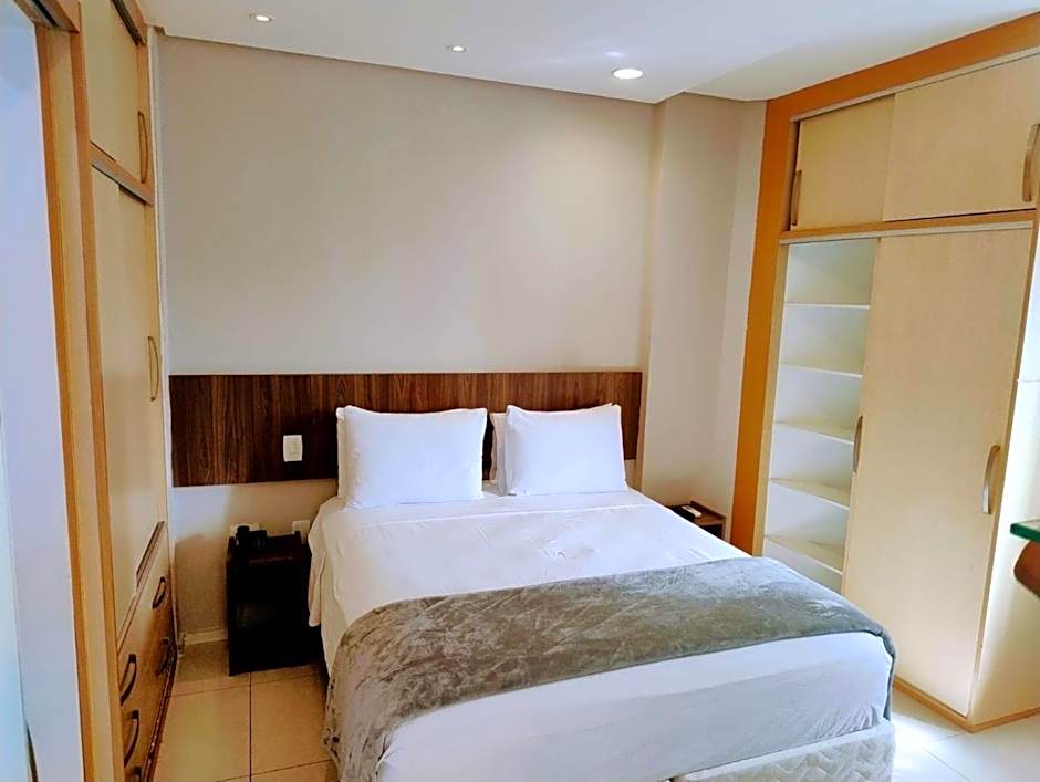 The Deluxe Queen Room at Golden Flat1655 Beira Mar Fortaleza is a spacious room measuring 474 sqft. It is a double room with a Queen size bed, accommodating 2 adults and no children. Smoking is not allowed in this room.