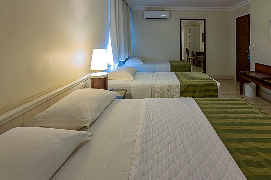 The Hotel Villa Mayor Charme in Fortaleza offers a variety of room types suitable for different occupancy needs. They have Quadruple Rooms, Superior Triple Rooms, Standard Queen Rooms, Suite, Standard Double Rooms, Standard Twin Rooms, and Superior Twin Rooms. Smoking is not allowed in any of the rooms. The bed sizes range from Queen to Double to Twin beds, depending on the room type.