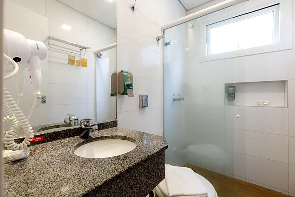 On-site parking options include Private Parking (extra charges) and Parking On Site (extra charges), and an Airport shuttle (extra charges) is available. This combination offers practical comfort for travelers looking for a budget-friendly stay near central Foz do Iguaçu.