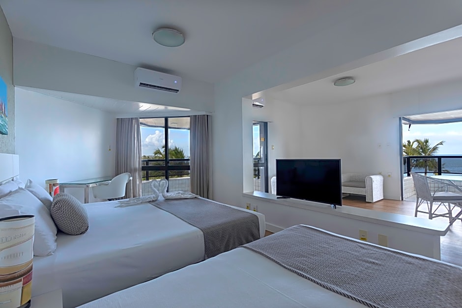 Now let's talk about the comfortable and spacious rooms at Maceió Atlantic Suites. The hotel offers a range of room types to accommodate different needs. From the Duplex Apartment, which can accommodate 4 adults and 3 children, to the cozy Side Suite, perfect for 2 adults and 1 child, you'll find the perfect space for your stay. Each room is modern and well-equipped with air conditioning, balconies, and free toiletries. So, whether you're traveling with family, friends, or as a couple, Maceió Atlantic Suites has the ideal room to ensure a pleasant and relaxing experience.
