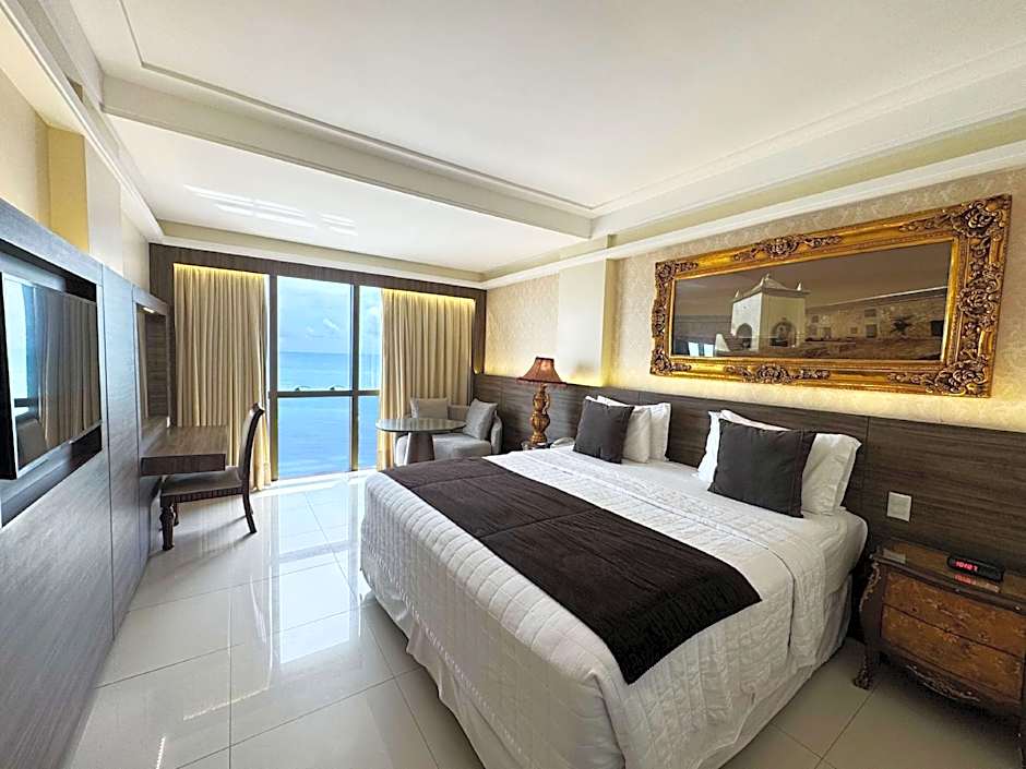 Majestic Ponta Negra Beach, WorldHotels Elite offers a variety of rooms including Luxury Room with Side Sea View, Quarto Super Luxo com Vista Frontal do Mar, Super Luxury Room with Frontal Sea View, and Suite with Frontal Sea View and Balcony. Occupancy ranges from single to quadruple, accommodating up to 4 adults and 2 children. Bed sizes vary from Double to Sofa Bed and room sizes range from 269 to 398 sqft. Smoking is not allowed in any of the rooms.