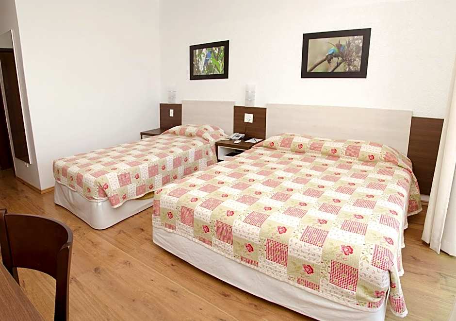 The Camboa Hotel Paranaguá offers three types of rooms: Triple Rooms, Double Rooms with Garden View, and Double Rooms with Pool View. All rooms have a size of 301 sqft and do not allow smoking. Triple Rooms accommodate 3 adults and 1 child, while both types of Double Rooms accommodate 2 adults and 1 child. The Triple Room has 3 twin beds, while the Double Rooms have a combination of twin and double beds.
