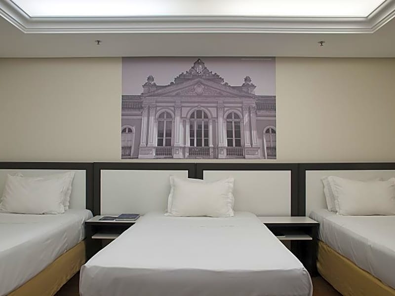 The Master Grande Hotel - Centro Histórico offers a variety of rooms including Premium Twin Rooms, Triple Rooms with One Double Bed and One Single Bed, Premium Double Rooms, Classic Triple Rooms, Classic Double Rooms, Quadruple Rooms, and Classic Twin Rooms. All rooms have a size of 237 sqft, except for the Classic Triple Room which is 215 sqft. Smoking is not allowed in any of the rooms. The rooms can accommodate different numbers of adults and children, with the Quadruple Room accommodating the most with 4 adults and 3 children. Bed sizes vary with options including Twin, Double, or a combination of both.