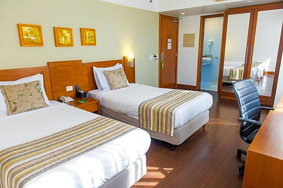 The hotel offers Superior Double rooms and Deluxe Double rooms, both with a room size of 344 sqft. smoking is not allowed in these rooms. They can accommodate 2 adults and 1 child, offering a King size bed. Another option is the Superior Twin room, suitable for 2 adults and 1 child, with 2 Twin beds. The hotel also has the King Suite, which has the same occupancy and bed types as the other rooms.