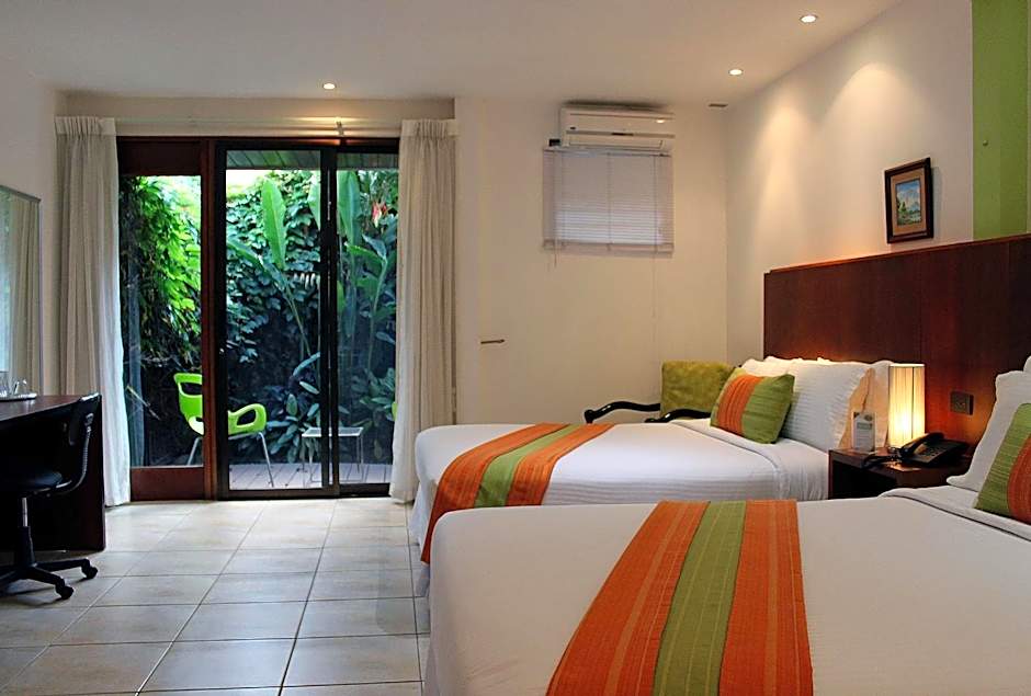 With a balcony and garden view, this recently refurbished room features a cable TV, mini-bar and air-conditioning. The bathroom is spacious and features light colors.