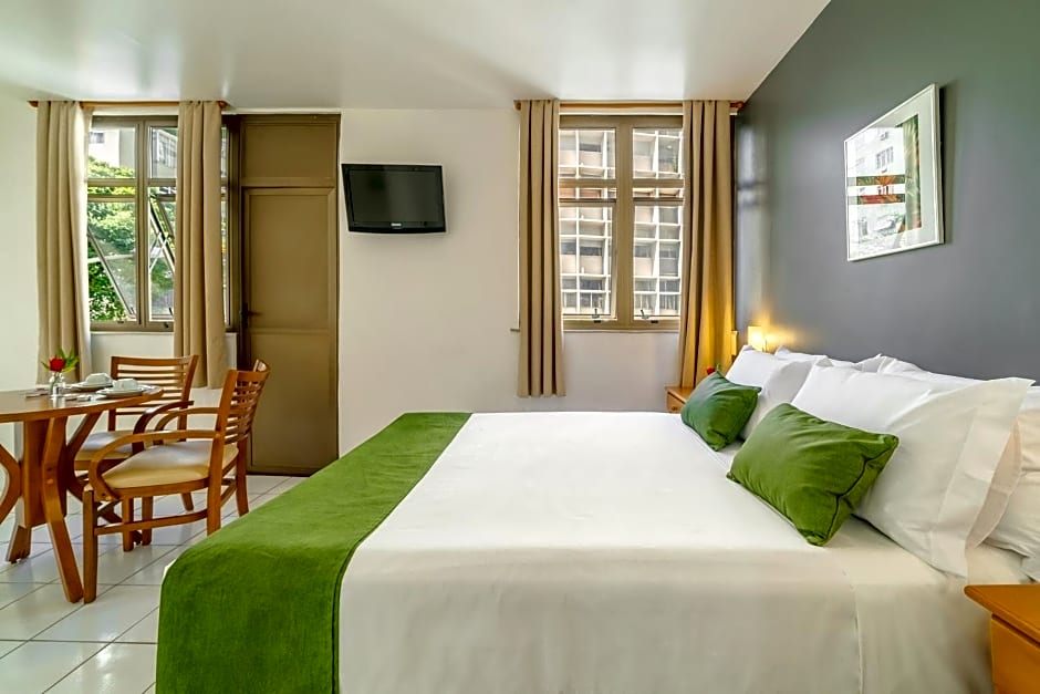 At Apa Hotel Copacabana, guests can choose from a variety of room types including Economy, Standard, Patio, Luxury, Deluxe, and Superior rooms. All rooms do not allow smoking and can accommodate 2 adults and 1 child. Bed sizes vary from 1 double bed to 2 double beds, providing options for guests' preferences.