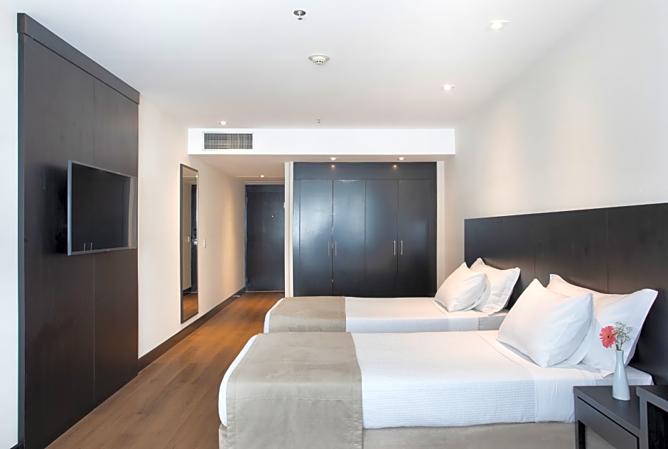 This family room features a rooftop pool. Providing free toiletries, this family room includes a private bathroom with a shower and a hairdryer. The spacious air-conditioned family room provides a flat-screen TV with cable channels, soundproof walls, a mini-bar and a wardrobe. The unit offers 4 beds.