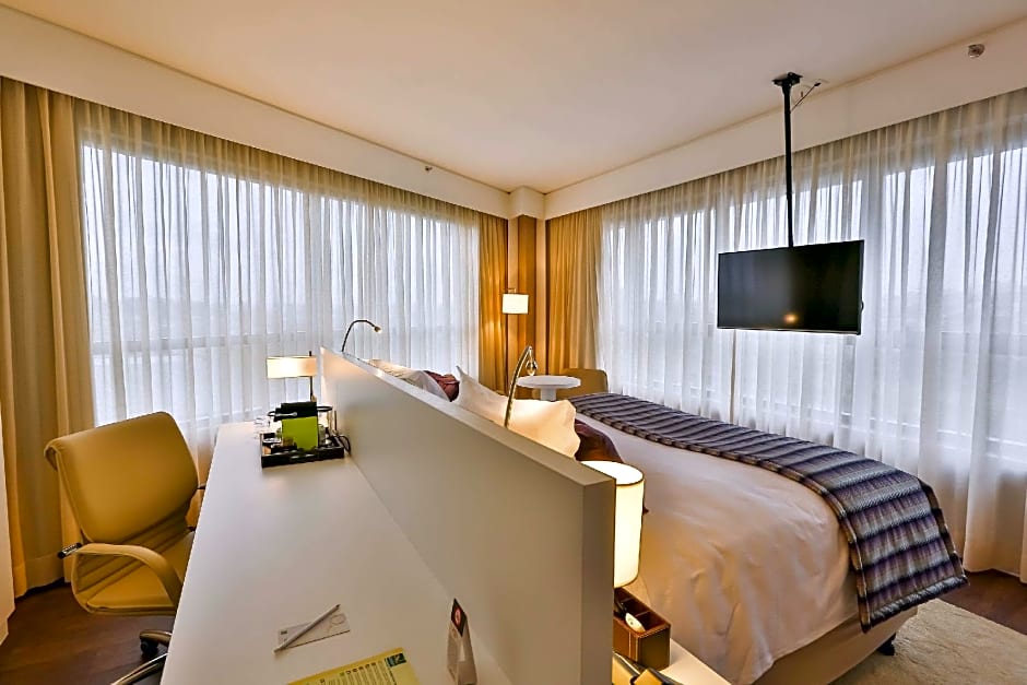 Overall, guests have the option to stay active at the fitness center or enjoy a meal at the on-site restaurant, Noah Gastronomia, during their time at the hotel.