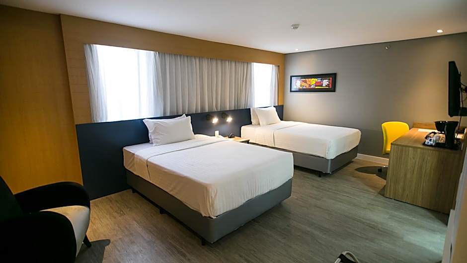 The Holiday Inn Parque Anhembi offers a variety of rooms including Standard King Rooms, Premium King Rooms, Standard Double Rooms with Two Double Beds, Standard Twin Rooms, Suites with 2 Double Beds, Standard Twin Rooms on High Floor, Standard Double Rooms, Premium Twin Rooms, Deluxe King Rooms, and Standard Rooms with King Beds. All rooms are non-smoking and range in size from 280 sqft to 377 sqft. The rooms can accommodate either 2 adults and 1 child or 2 adults and 2 children, depending on the room type.
