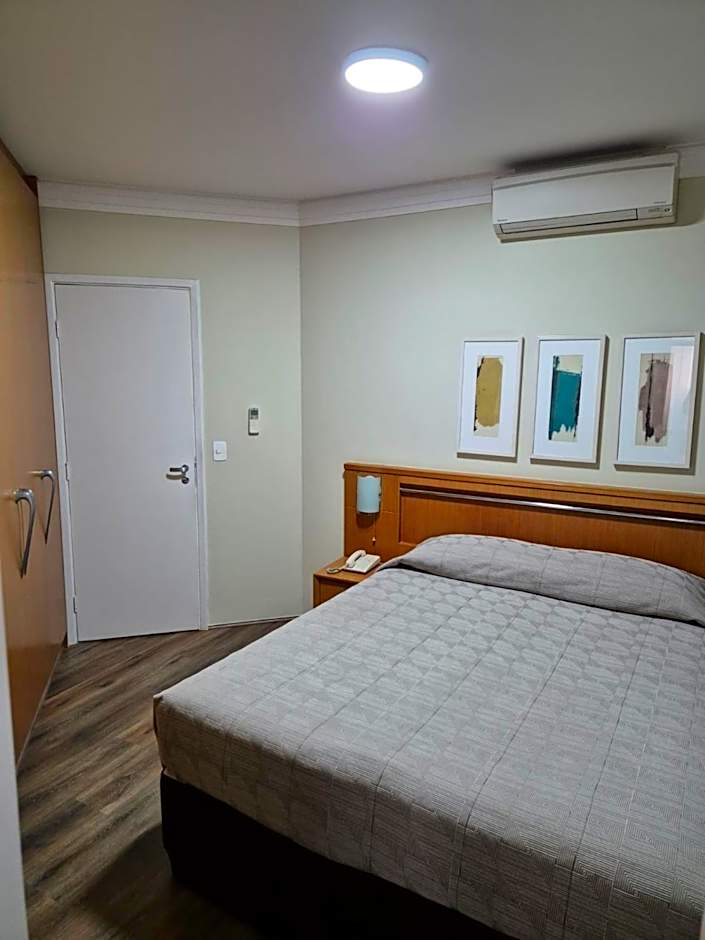 Offered good breakfast. Apartment was a small 2 bedroom, 2 bathroom living room, small kitchen and a laundry (washing and dryer!). One room was very standard with lots of closets. The other room was a mixture of office with a sofa/bed and a table attached to the wall in which the hotel added a crib for our 16 moths old grandkid ahead of our arrival because I had emailed them asking for it. That was nice!. The fridge was prefilled like a minibar although it was a full size fridge. The location was ok, easy to access by car but had to walk several blocks uphill to get to the business part of Sao Paulo