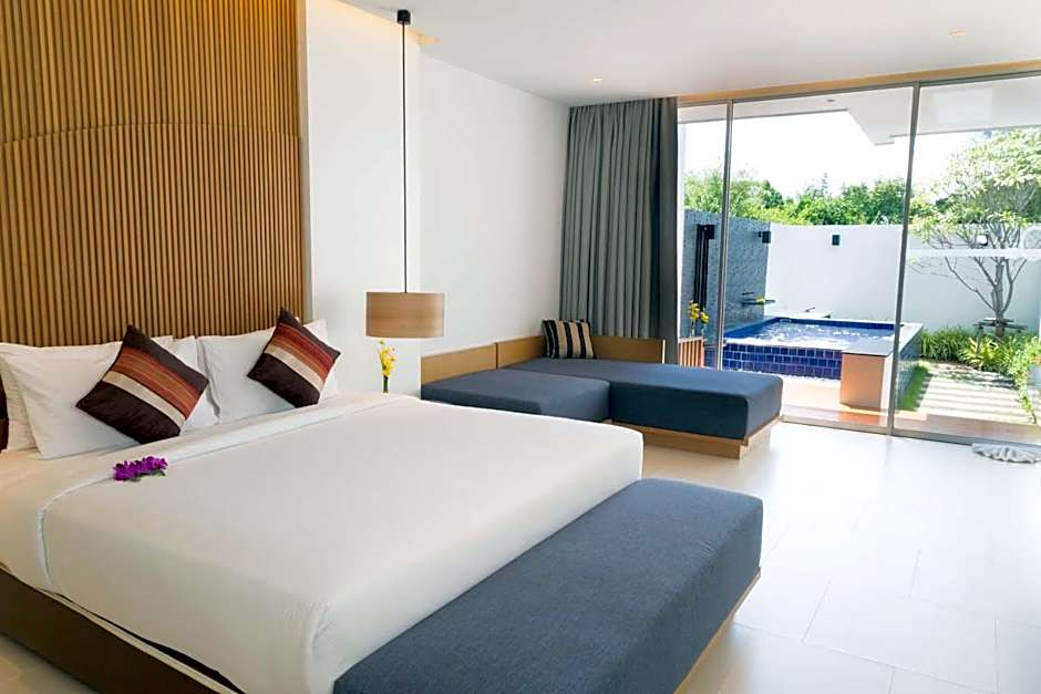 This villa is located in the resort's beautiful natural dune area, just 0.9 mi from the beach and from our restaurant, Ocean Lounge Beach Club. A free shuttle service is available for the short journey from your villa to the beach. The open plan living space consists of a lounge, dining area, kitchenette and separate utility area. It has two bedrooms each with a private bathroom and a sofa bed in the living room. There is a large veranda between the house and the pool area and a terrace to enjoy the warm days.