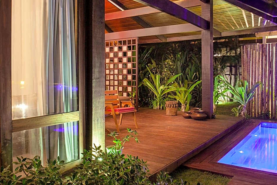 Premium bungalow measuring 295 ft² with sophisticated environments, everything was designed to offer a unique comfort, with a private deck, huge bathrooms with a double hydromassage, private pool, pool/sea view and private garden, as well as a four-poster bed. 43" SMART TV, Nespresso machine, inverter air conditioning, L'occitane toiletries, goose down pillows, "rainshower" showers heated by solar energy, super king size bed 6.6 ft x2m, 300 thread count Egyptian Trousseau bed linen, Trousseau cotton Egyptian thread bath linen and bathrobe.