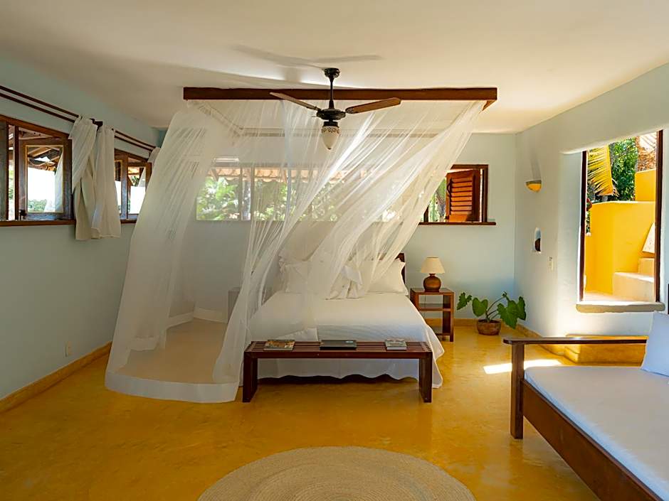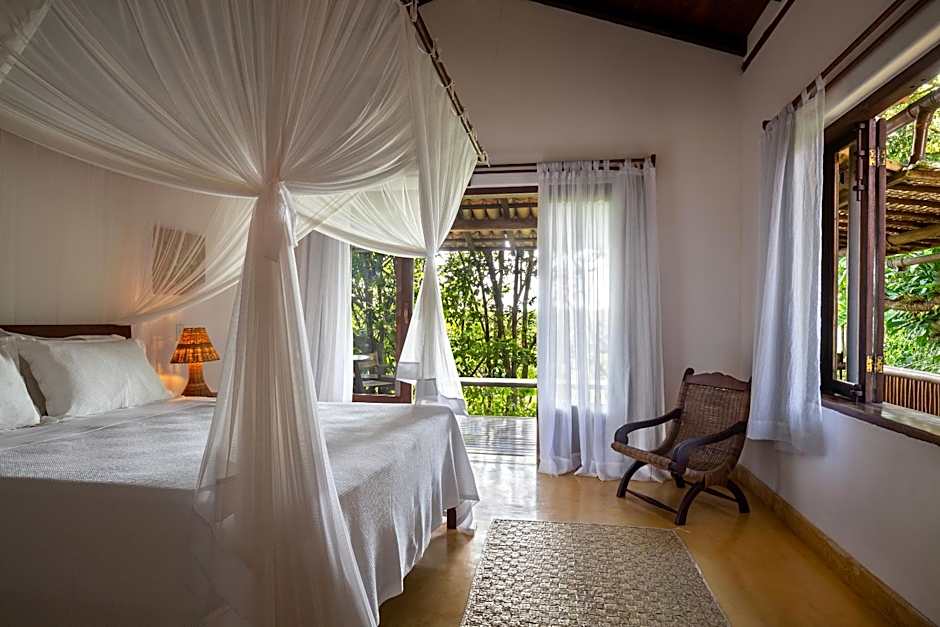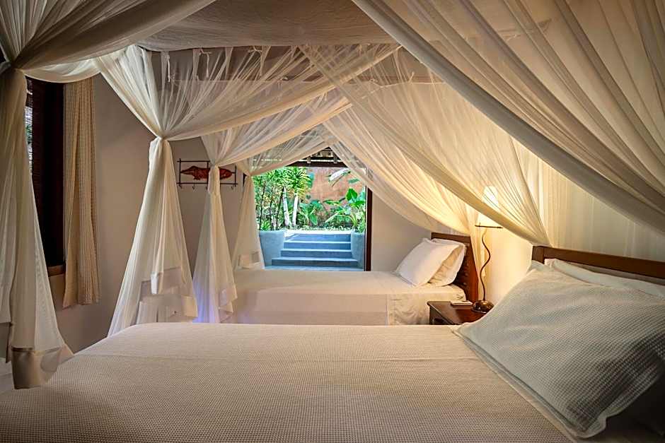 An adults-only retreat invites travelers to slow down and soak up Trancoso’s charm. Outside, garden spaces and balconies overlook leafy corners, with beach chairs waiting for a sun-kissed pause and a picnic area for breezy lunches. The Bar adds easygoing vibes, while the outdoor pool glistens with a shallow end and a view—perfect for a relaxed dip after a day by the sea.