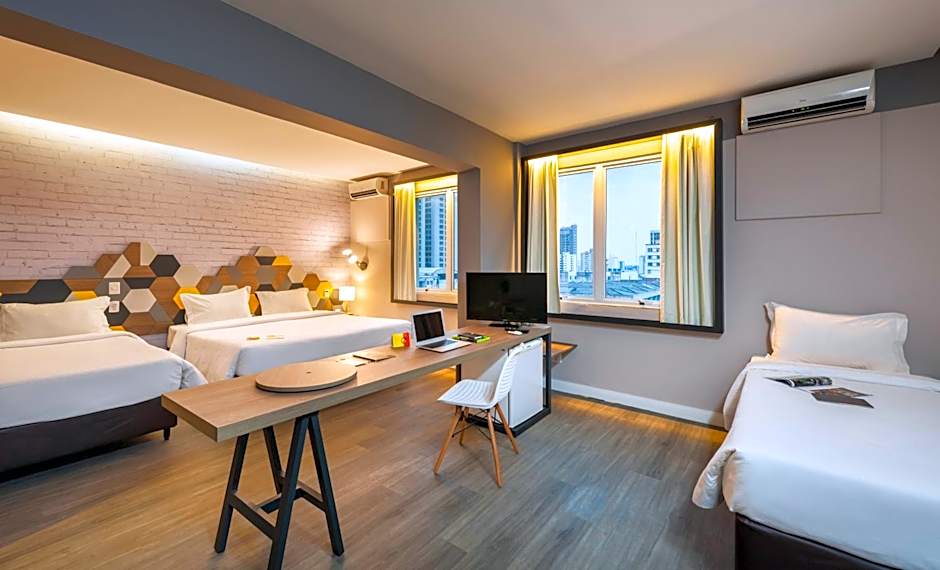 B&B HOTEL Uberlândia offers three types of rooms. The Standard Twin Room is equipped with two twin beds and can accommodate two adults and one child. The Standard Family Room has two twin beds and one double bed, accommodating four adults and three children. The Standard Double Room features a double bed and can accommodate two adults and one child. None of the rooms allow smoking.