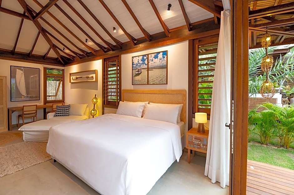 Nestled just 0,4mi from the vibrant heart of Velha Boipeba, Colibri Beach Villas offers an inviting retreat on Brazil's enchanting coastline. This five-star paradise pampers guests with its beachfront location, giving you direct access to golden sands and shimmering waters—perfect for unwinding or snorkeling in clear tropical waters (note: snorkeling incurs an extra charge). Start your mornings with a leisurely breakfast on your private patio or balcony, all while soaking in splendid garden views and the gentle sea breeze.