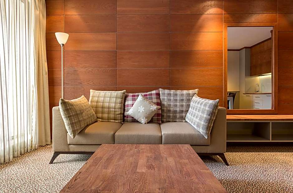 The hotel offers Villa Comfort and Two-Bedroom Villa rooms, both non-smoking, with sizes of 1055 sqft and 1270 sqft respectively. The Villa Comfort room accommodates 2 adults with two twin beds and one king-size bed, while the Two-Bedroom Villa accommodates 4 adults with two twin beds and two king-size beds. The hotel also offers One-Bedroom Apartments and Two-Bedroom Suites, both non-smoking, with sizes of 646 sqft and 861 sqft respectively. The One-Bedroom Apartment accommodates 2 adults with one queen-size bed and two twin beds, while the Two-Bedroom Suite accommodates 4 adults with two twin beds and one king-size bed.