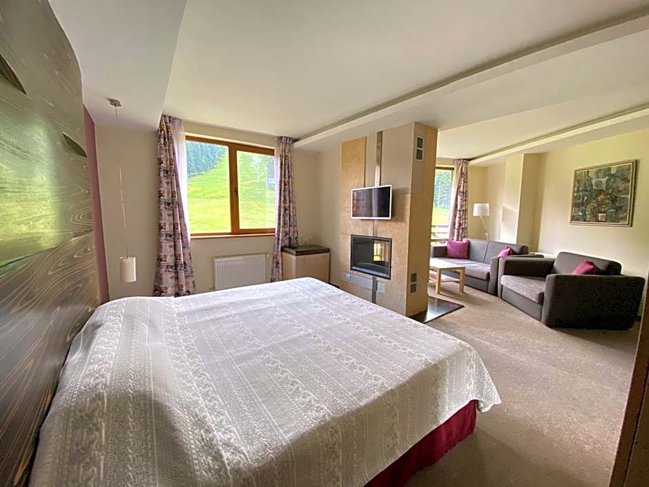 This suite's special feature is the fireplace. Boasting 1 bedroom, this spacious suite has 1 bathroom with a bath, a seating area and terrace where you can relax. The suite offers a flat-screen TV with streaming services, soundproof walls, a mini-bar, a wardrobe as well as mountain views. The unit offers 3 beds.