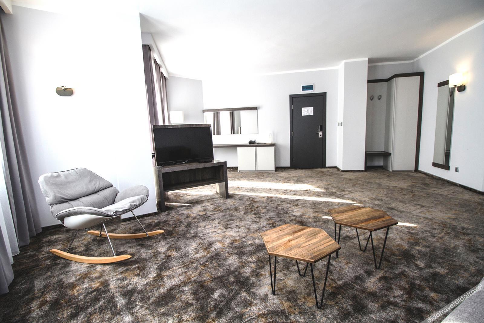 A Suite with two separate bedrooms and a lounge area. This 217 ft² suite has 2 bedrooms with queen size bed, a living room, a fully equipped mini-bar, toiletries by Geneva Guild, rain shower, 3 LED TVs with more than 50 international channels, high speed WiFi, free safety deposit box, central air conditioning, 2 bathrooms, and 2 balconies.