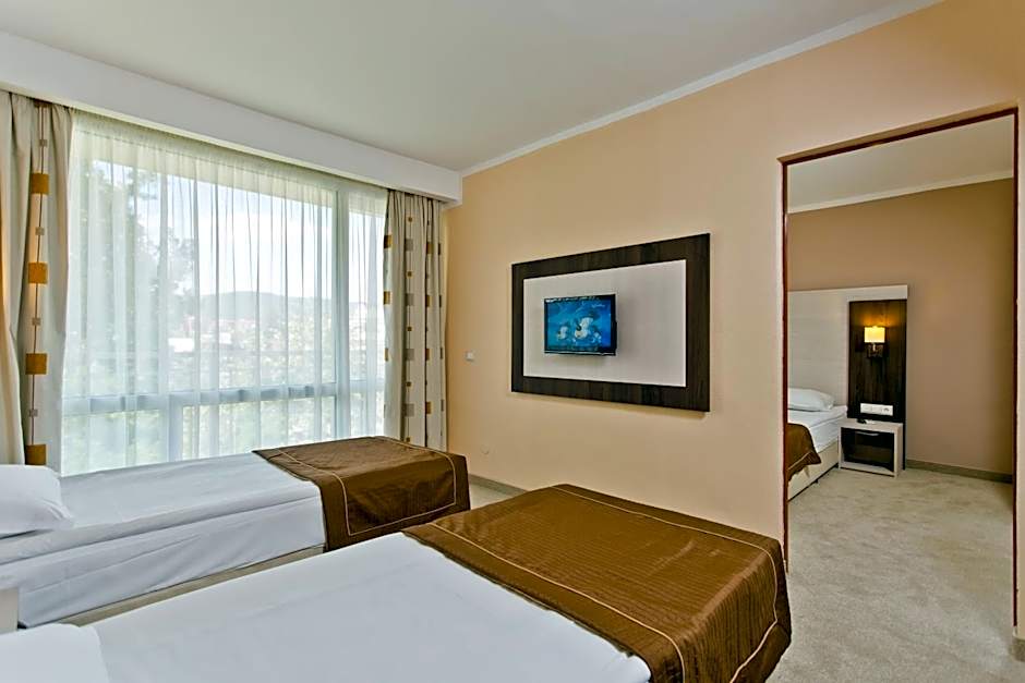 This twin room features central air conditioning, a sofa, a furnished balcony, a flat-screen TV with cable channels and a private bathroom with a tub or a shower. The Premium service includes: -accommodations in premium rooms of Block D -an extra main restaurant -pool with free sunbeds and umbrellas -WiFi of higher quality -bath and beauty amenities of higher quality -coffee and tea facilities.