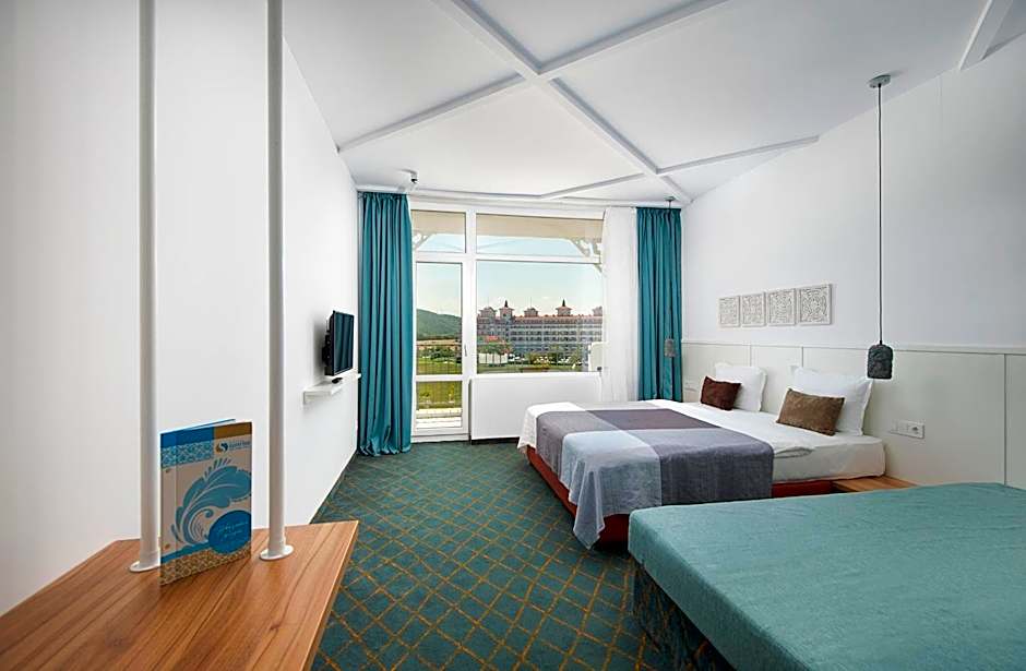 But the adventures don't end at the pool! For those looking for even more excitement, the resort's water sports facilities are ready to pump up the adrenaline with thrilling activities on the sparkling Black Sea. Whether you're a seasoned wave rider or a curious beginner, there's something for everyone. Imagine jet skiing, paddleboarding, or simply taking a leisurely swim in the warm sea. When you need a break, lounge back, sip a refreshing cocktail from the bar, and revel in the stunning ocean views — what more could a traveler dream of?