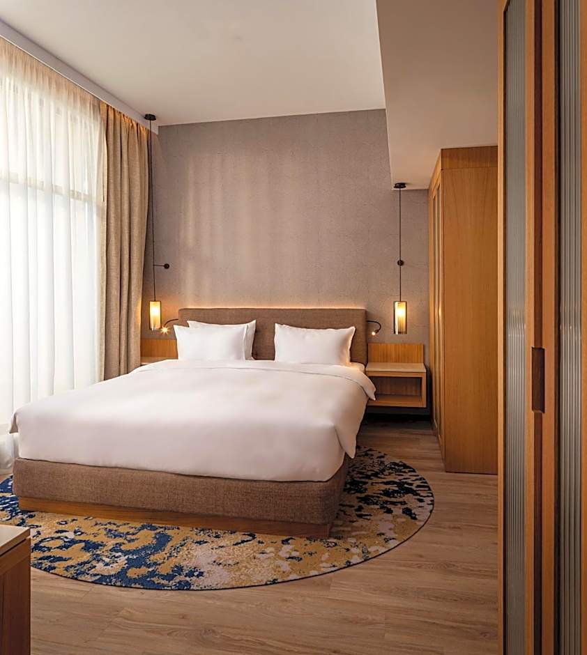 This 28 sq m (300 sq ft) room is a serene retreat with stunning views of Pravets Lake. With one king bed, a dedicated workspace, a cozy sofa and complimentary Wi-Fi, guests have everything they need to work or relax. The room also features a modern bathroom and a private balcony.
