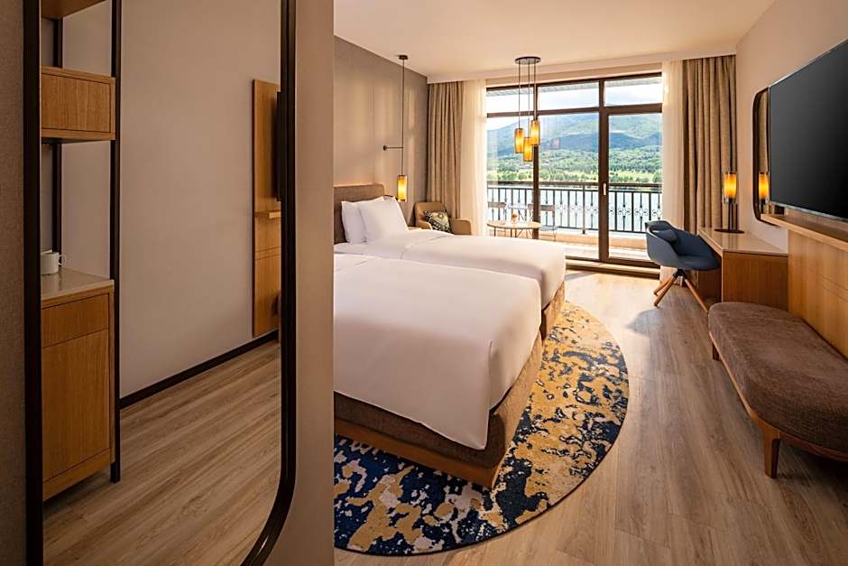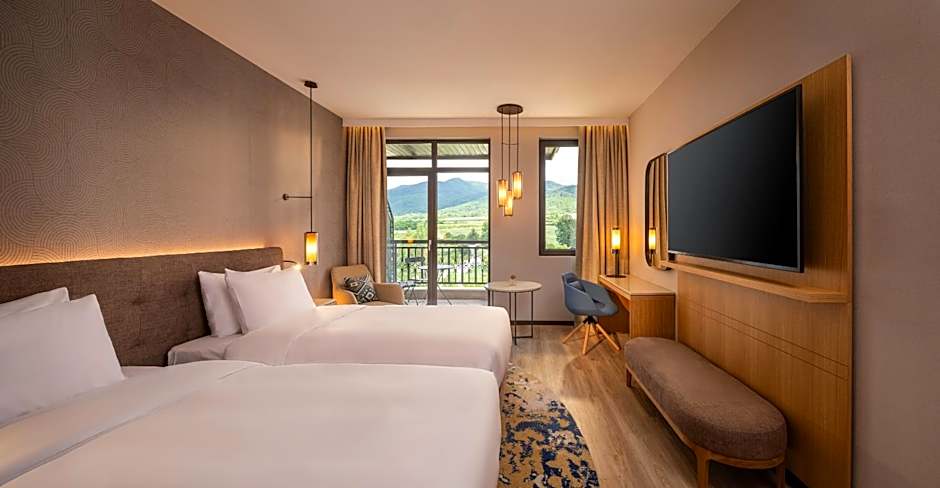 A spacious and comfortable 28 sq m (300 sq ft) room with a breathtaking mountain view. Relax on a luxurious king bed, take in the beautiful scenery from your private balcony and stay connected with complimentary Wi-Fi. The room features a comfortable working and sitting area, complete with a 65” HD TV with a wide range of international channels for your entertainment.