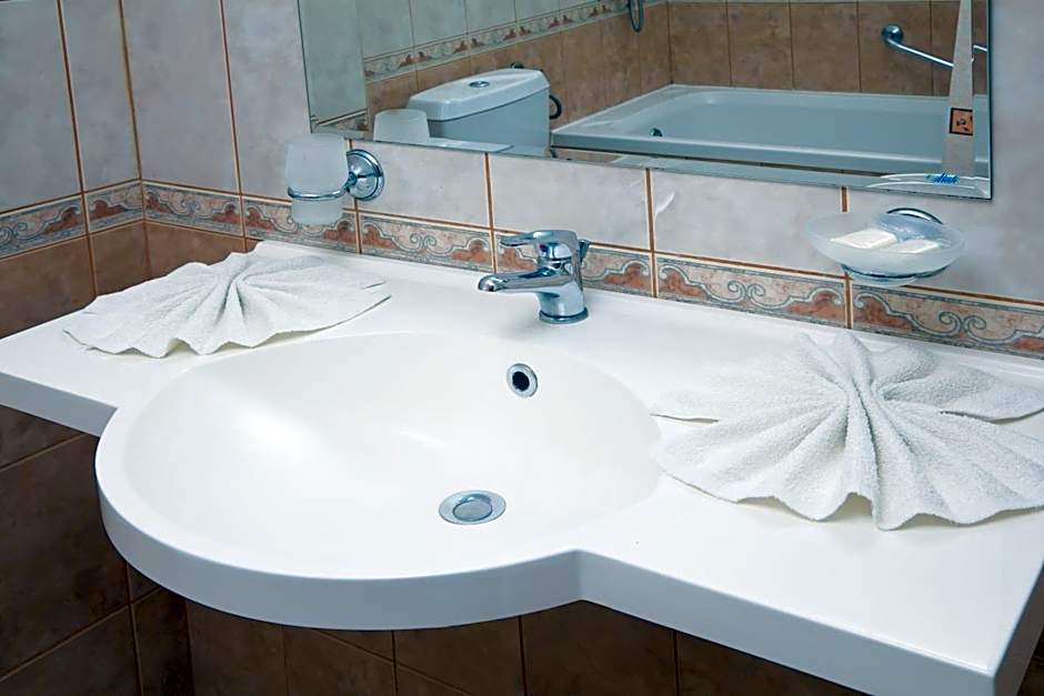 At Hotel Sunny, guests can enjoy a variety of amenities such as a free outdoor swimming pool, a fitness center, and a kid-friendly buffet. The hotel also offers water sports facilities, a sauna, and a tennis court for those looking to stay active during their stay. With a beach, golf course, and a sun deck on-site, guests have plenty of options for relaxation and leisure activities.