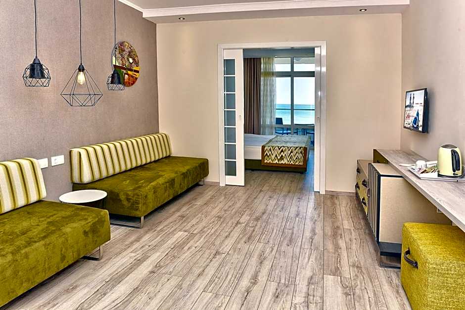We booked a room with "Park view" but when we got to our room we noticed we had a upgrade and had a room with beach & sea view! This started better than we thought, we were welcomed by the manager Nicolai and he made us feel right at home and said "If you have any questions please ask me or the staff" At the reception the girls Selin, Gerigana, Ivon and Yoanna had an answer on every question we asked and their knowledge was excellent. Because my partner is a celiac we were introduced to the restaurant manager Petur and he showed her around the restaurant which food she could and could not eat (everything is nicely written down on little signs above the food, like Vegan, Gluten etc etc...) The hostess Neli and her staff escorted us to our table and already knew my partner could only have gluten free food. Sylvia is a excellent hostess and took care of us and our wishes in the restaurant, we really felt at home here. There were a la carte restaurants in the Hotel and all you had to do is reserve in advance and you could get a table, our Italian dinner was really nice and well presented, like you were in Italy! The Sauna's were good and hot, just what you expect. We can recommend this hotel to everyone, it's at the end of the boulevard so it's not so loud and you can enjoy a good nights sleep.