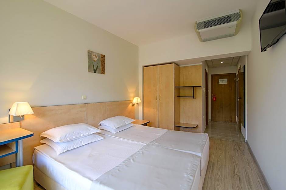 This comfortable Superior Twin Room offers a relaxing stay with a private balcony overlooking the pool or the surrounding park. The room includes air conditioning, satellite TV and a refrigerator, as well as a seating area inside the room and a cozy sitting corner on the balcony. For added convenience, the room features a sofa bed, suitable for a child, and a private bathroom with toilet. Guests can also enjoy free Wi-Fi and a complimentary safe during their stay.