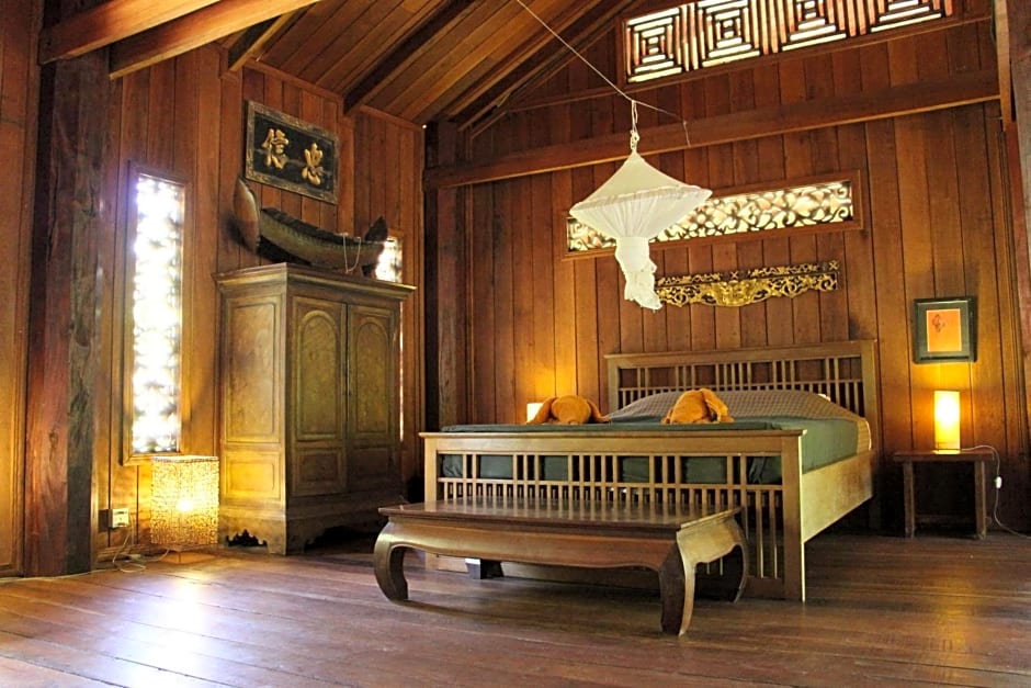A very special place with great traditional wooden houses as rooms. Really loved the place. Something different and very well done. Tasteful, artful, very spacious and comfortable rooms. An atmosferic open restaurant with good food. Large pool. All in a beautiful setting on the quiet island in front of Kratie. A great place to stay!
