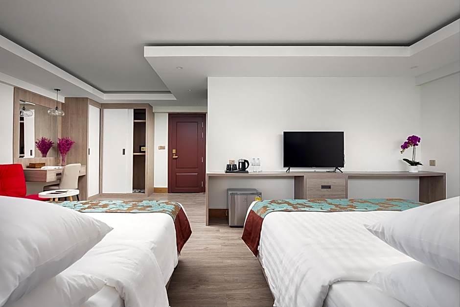 The spacious twin room provides air conditioning, a mini-bar, as well as a private bathroom featuring a walk-in shower and a hairdryer. The twin room features tiled floors, a seating area with a flat-screen TV with cable channels, a tea and coffee maker, a wardrobe, as well as a safe deposit box. The unit offers 2 beds.