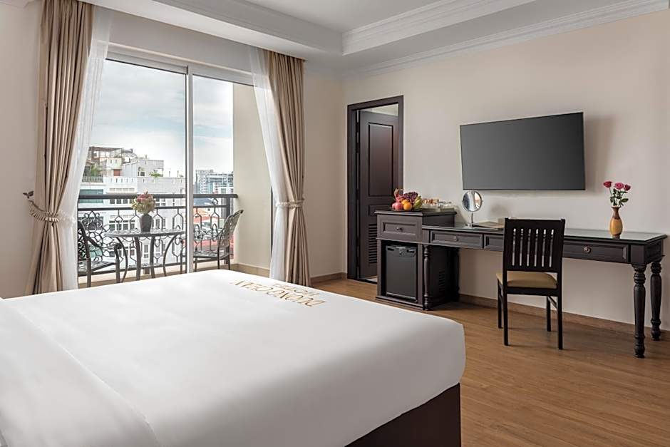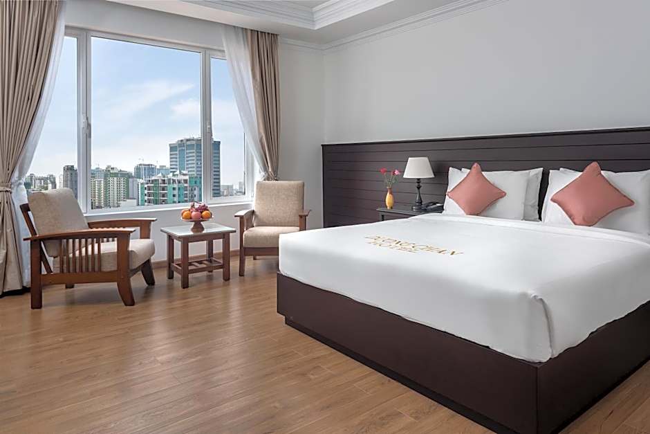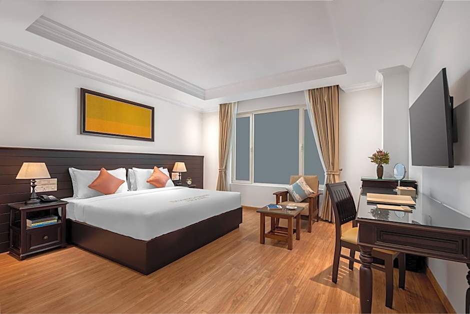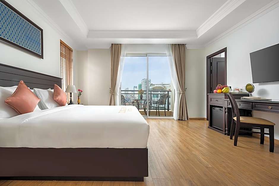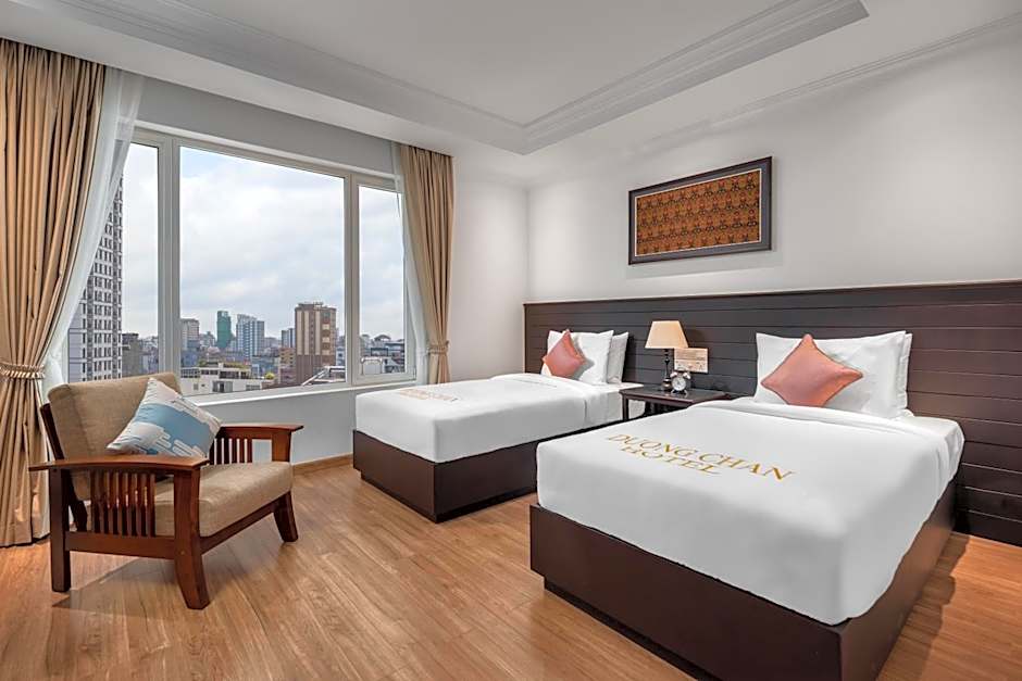 The hotel offers a range of rooms including the Presidential Suite, Deluxe Twin Room, Deluxe Double Room with Balcony, Premier Double Room with Balcony, Superior Double Room with City View, Superior Double Room, Superior Twin Room, and Duong Chan Family Suite. All rooms are non-smoking and accommodating for 2 adults and 1 child, except for the Duong Chan Family Suite which can accommodate 4 adults and 1 child. The beds available range from King size beds to Twin beds.