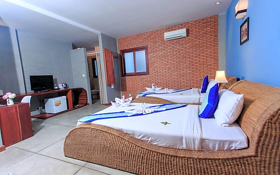 The hotel offers a King Suite with Balcony, a Family Room, a Superior Double Room, and a Deluxe Twin Room. The King Suite and Superior Double Room both have a Queen size bed and accommodate 2 adults. The Family Room has 2 Queen size beds and accommodates 3 adults. The Deluxe Twin Room has 2 Twin beds and also accommodates 2 adults. Smoking is not allowed in any of the rooms.