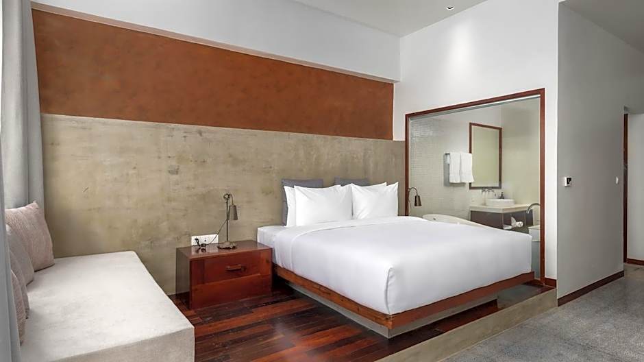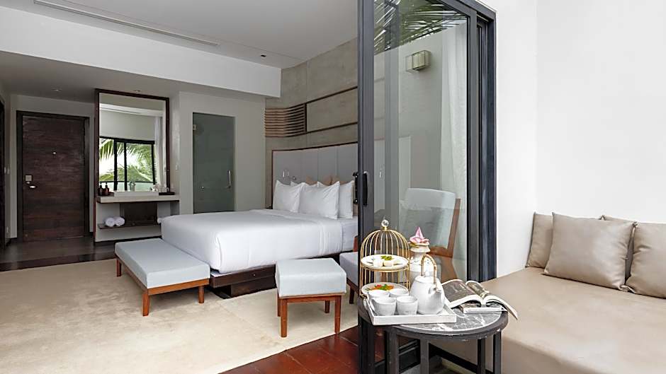 This suite is located on the top floor, and includes a private balcony, outdoor bathtub, sofa. - Free mini-bar - Choice of welcome drink and cold towel upon arrival - Complimentary fruit platter, replenished daily - Early check-in and late checkout services (subject to room availability) - Nightly turn down service - Pillow menu - Complimentary poolside treats - Personal refillable water bottle - Complimentary laundry per stay. Remarks: Upper floors accessible by stairs only (No Elevator) It is perfect for honeymooner.