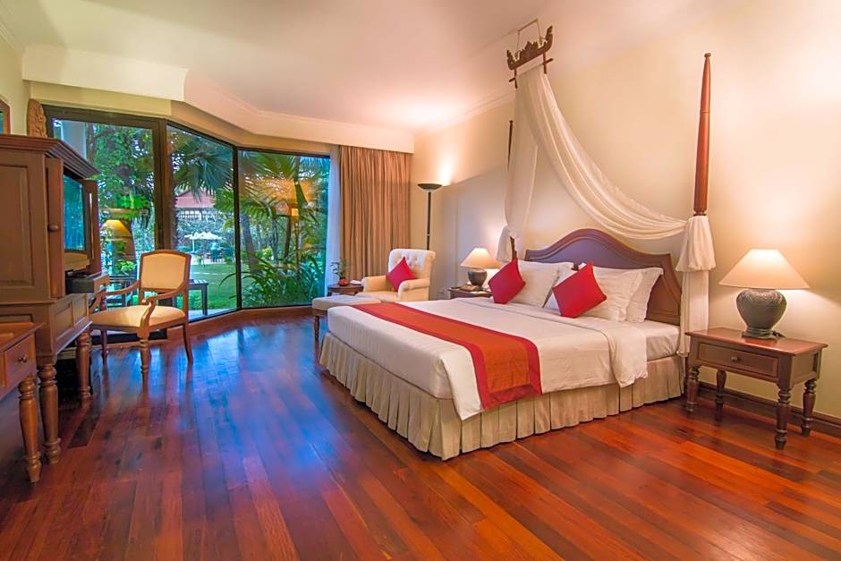 Located in the main building of the resort, these rooms are Cambodian-inspired with poster beds and in-laid teak floor. Guests may even enjoy panoramic views of the swimming pool from many of the rooms; and all rooms are guaranteed a view of the greens.