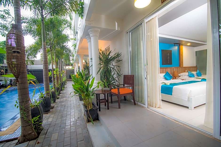 Extra services—shuttle service, spa, massage, and airport shuttle—are available for an extra charge. Additional amenities include air conditioning, a bar, beach umbrellas, beach chairs/loungers, and a garden to enjoy. Cash is accepted, along with Visa and Mastercard. Located at National Road 06, Phum Banteay Chas, Siem Reap, Cambodia.