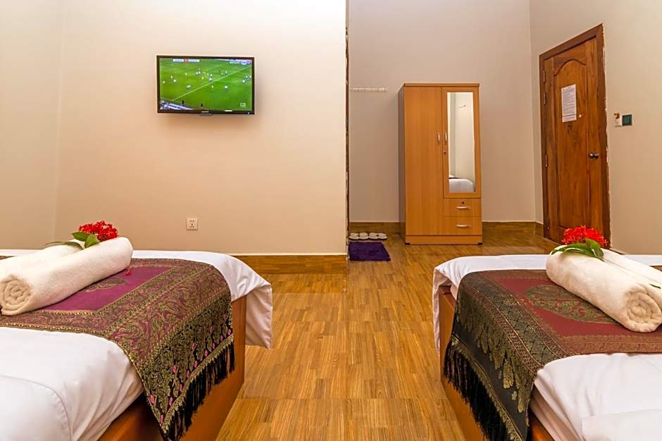 After a day of exploring the wonders of Siem Reap, retreat to the cozy and comfortable rooms at the Aniza Angkor Villa. Whether you are traveling with your family, a significant other, or a friend, the hotel has a room type to suit your needs. With the spacious Deluxe Family Room, you'll find a twin bed and a queen-size bed, accommodating up to three adults. The room offers a generous 377 square feet of space, ensuring that everyone has plenty of room to relax and unwind.