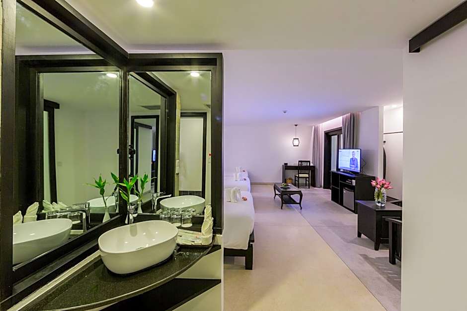 offers a polished 4-star retreat in Siem Reap, featuring an outdoor saltwater pool with a view and an adults-only policy. A sun deck and terrace provide relaxed spaces to lounge after temple-hopping or town exploring, adding a breezy touch to every day of travel.