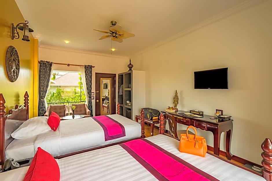 Address: Wat Damanak Market Street (Infront Of Wat Damnak Primary School). Featured amenities include a restaurant, an outdoor swimming pool (free), and free Wifi, plus air conditioning, a tour desk, private entrance, terrace, 24-hour front desk, non-smoking rooms, patio with garden view, balcony, and a bathtub with free toiletries. Shuttle service is available for an extra charge, and kids' meals (extra charges) and a picnic area add practical options. Breakfast is offered.