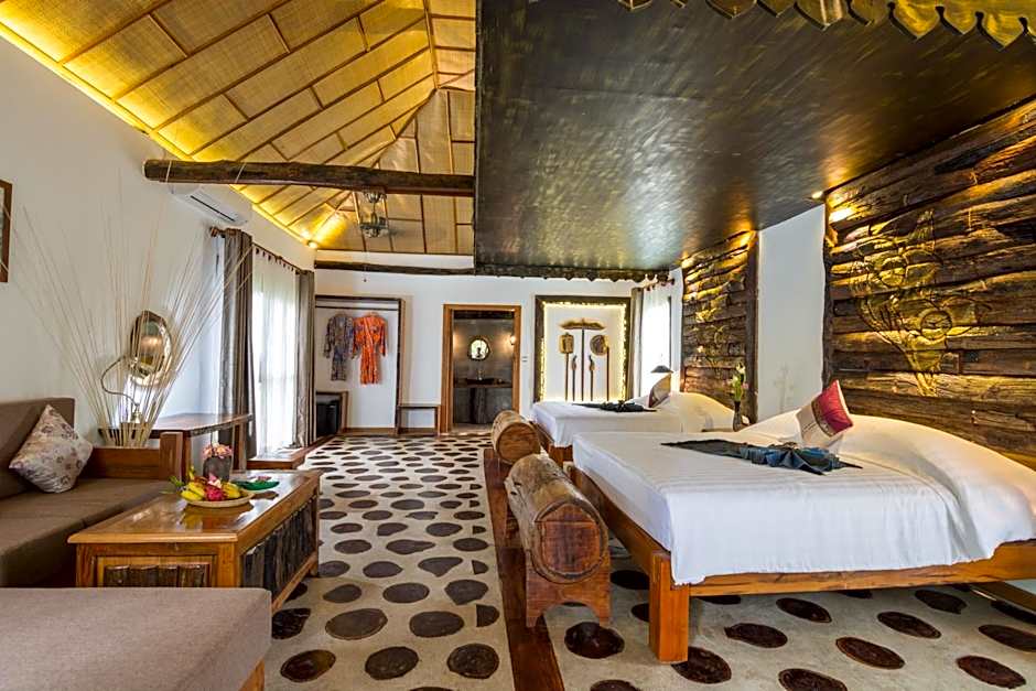 Family Private Lodge with 2 Villa. The room offers a local mobile phone during stay, fruit platter in the room, free bike during stay (subject to availability) and discount 10% cooking class with Khmer Food for guests who stay for more than 3 nights