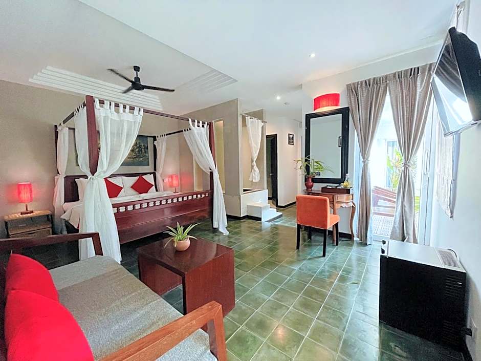 This hotel features beautifully designed rooms with private balconies and en-suite bathrooms equipped with bathtubs. Guests can relax in the lush gardens or enjoy a meal at the on-site restaurant. With its friendly staff and stunning surroundings, is the perfect choice for travelers seeking luxury and comfort in Siem Reap, Cambodia.