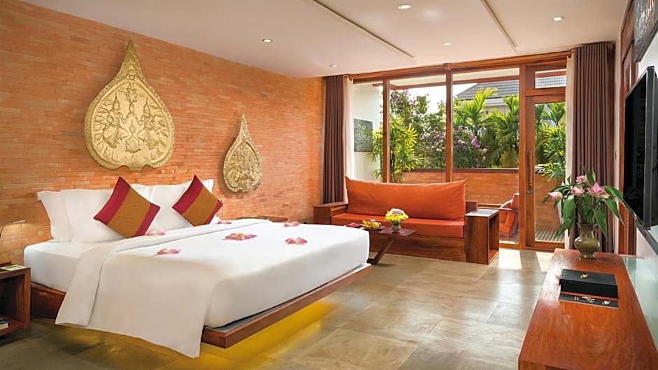 Featuring traditional Cambodian art and handicraft decorations, this largest suite features a daybed, a living room with a sofa and wooden furniture as well as an private bathroom. For added convenience, guests will find tea and coffee making facilities, a smart TV and Bluetooth speakers. A mini-bar, a coffee machine and an ironing facilities. - Free signature welcome drink & Banana Chip, Roasted Peanut with organic herbs & cold towel - Free fresh fruit platter upon arrival in the room - For 2 Night Stay Free one-time lunch of Khmer set menu at Roatt Restaurant Or Mesa Restaurant - Spa Credit with value of USD20 each per stay at our Lotus Spa - Buy one get one free at our Rohatt pool from 3-7 PM - Free high-speed internet Wifi in-room and public area - Free daily turndown service - Free use of baby cot for traveling family - 25% OFF laundry service - 25% OFF Spa