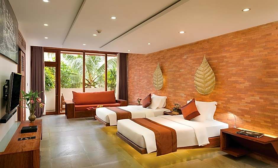 This air-conditioned suite features stone flooring and traditional Cambodian art and handicraft decorations. For added convenience, guests will find a LCD smart TV with cable channels and Bluetooth speakers. A spacious private bathroom includes free toiletries. - Free signature welcome drink & Banana Chip, Roasted Peanut with organic herbs & cold towel - Free fresh fruit platter upon arrival in the room - For 2 Night Stay Free one-time lunch of Khmer set menu at Sala Chhan Restaurant Or Mesa Restaurant - Spa Credit with value of USD20 each per stay at our Lotus Spa - Buy one get one free at our Rohat pool from 3-7 PM - Free high-speed internet Wifi in-room and public area - Free daily turndown service - Free use of baby cot for traveling family - 25% OFF laundry service - 25% OFF Spa